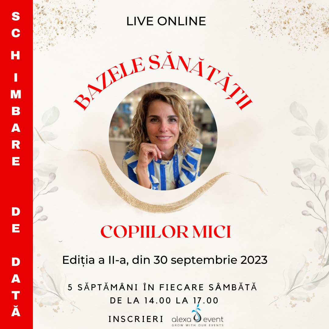 Cinci ateliere educative și interactive, în direct online, menite a împuternici cu instrumente practice pentru sănătate naturală și informație despre: